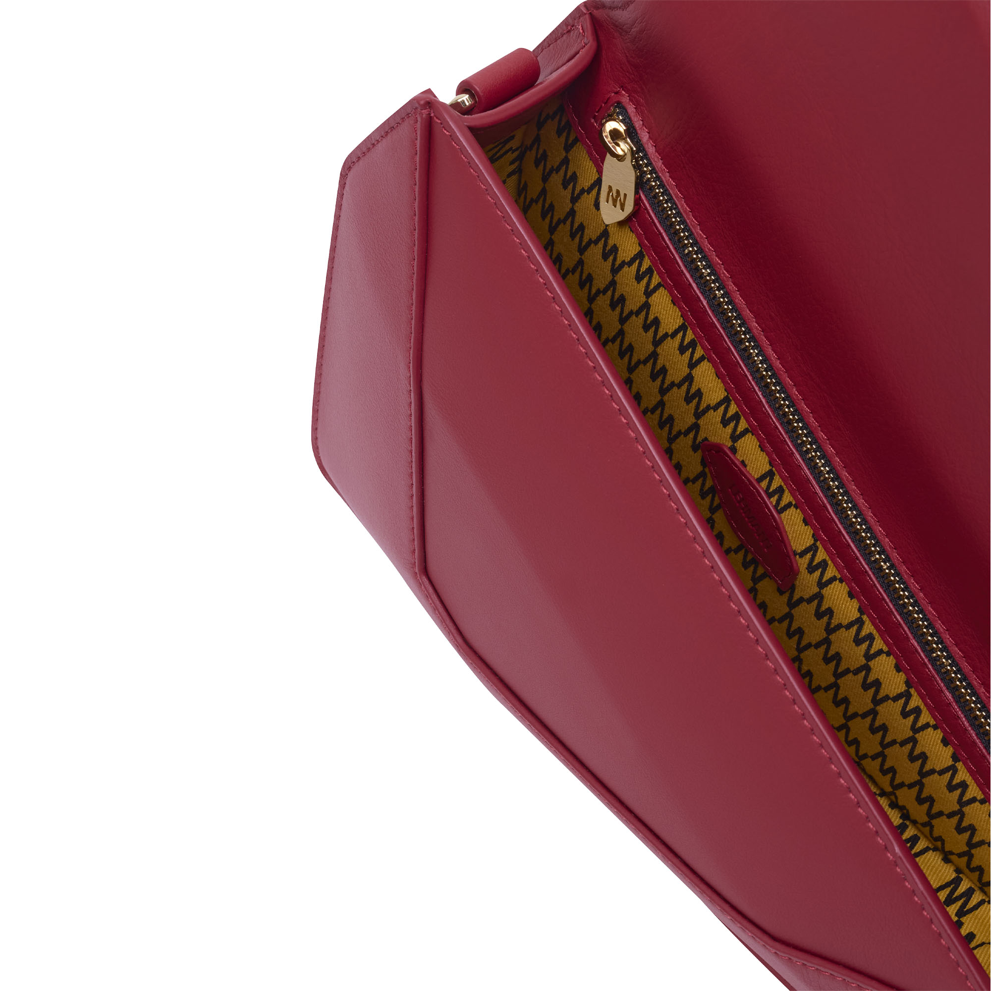 Inspired by the purity of minerals and the contained energy of rocks, its geometric silhouette expresses balance, strength, and permanence. A defined, clean form, free of excess. Compact and precise, it is designed to accompany essentials with natural ease. It functions as a clutch or with a handle, adapting discreetly to both day and night. An essential piece conceived to endure.